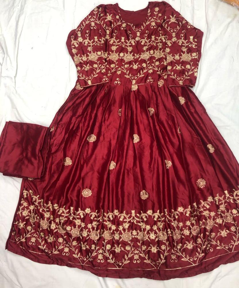 *Product Name*: 2 Pcs Women’s Stitched Shamoz Silk Zari Tilla Embroidered Maxi